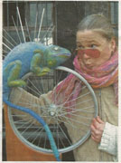 Wie ein Leguan auf die Radfelge kommt Wasserturm: Auf Einladung der Gemeindebücherei zeigt Cony Welcker ihre "Geistwesen in Stein an Holz mit Zeug" |